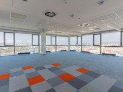 Prostory nabízí nájemci panoramatický výhled na Prahu směrem do centra.