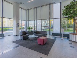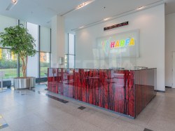 Samotné kanceláře mají pěkný a moderní fitout, který kombinuje openspace s jednotlivými kancelářemi, které jsou vkusně oddělené sklem. Samozřejmostí je vlastní zázemí, kuchyňka/toalety.