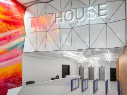 Budova Mayhouse se nachází na třídě 5. května 1746/22, pár minut chůze ze stanice metra C - Pražského povstání.