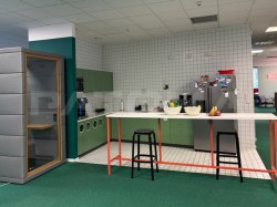 Kancelářské prostory zahrnují vše, co potřebujete pro klidnou a efektivní práci: recepci, zasedací místnosti, open space, privátní kanceláře, dvě kuchyňky, skladové prostory a nechybí ani komfortní „telefonní budky“ pro jednu či více osob. To vše vybavené kancelářským nábytkem a připravené k nastěhování.