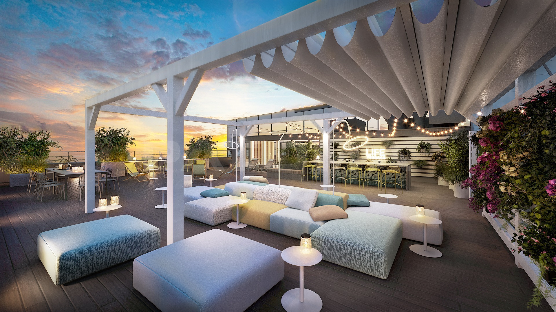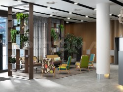 Budova nabízí reprezentativní recepci 24/7, moderní výtahy, bezbariérový přístup, kolárnu se sprchami, dostatek garážových stání, dobíjecí stanice pro elektromobily a společnou terasu, kde si lze i uvařit. V přízemí objektu je restaurace.