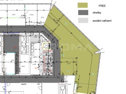 Dispozičně se jedná o openspace, 4 kanceláře/zasedací místnosti. Sociální zázemí je sdílené na patře. Z kanceláře je neopakovatelný výhled.