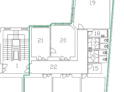 Dispozičně je prostor rozdělen na jednotlivé kanceláře, 2 krát vlastní soc. zařízení.