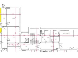 Dispozičně se jedná o tři sousedící místnosti, menší skládek, viz plánek. Soc. zázemím s kuchyňkou jsou společné na patře. Na oknech jsou mříže, k dispozici bezpečnostní systém.