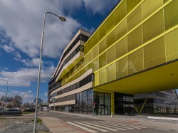 Výhodou budovy je především výborná dopravní dostupnost - stanice metra Palmovka.