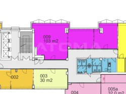 Dispozičně se jedná o tři sousedící místnosti, každá s vlastním vstupem. Toalety a kuchyňka jsou sdílené a hned naproti.