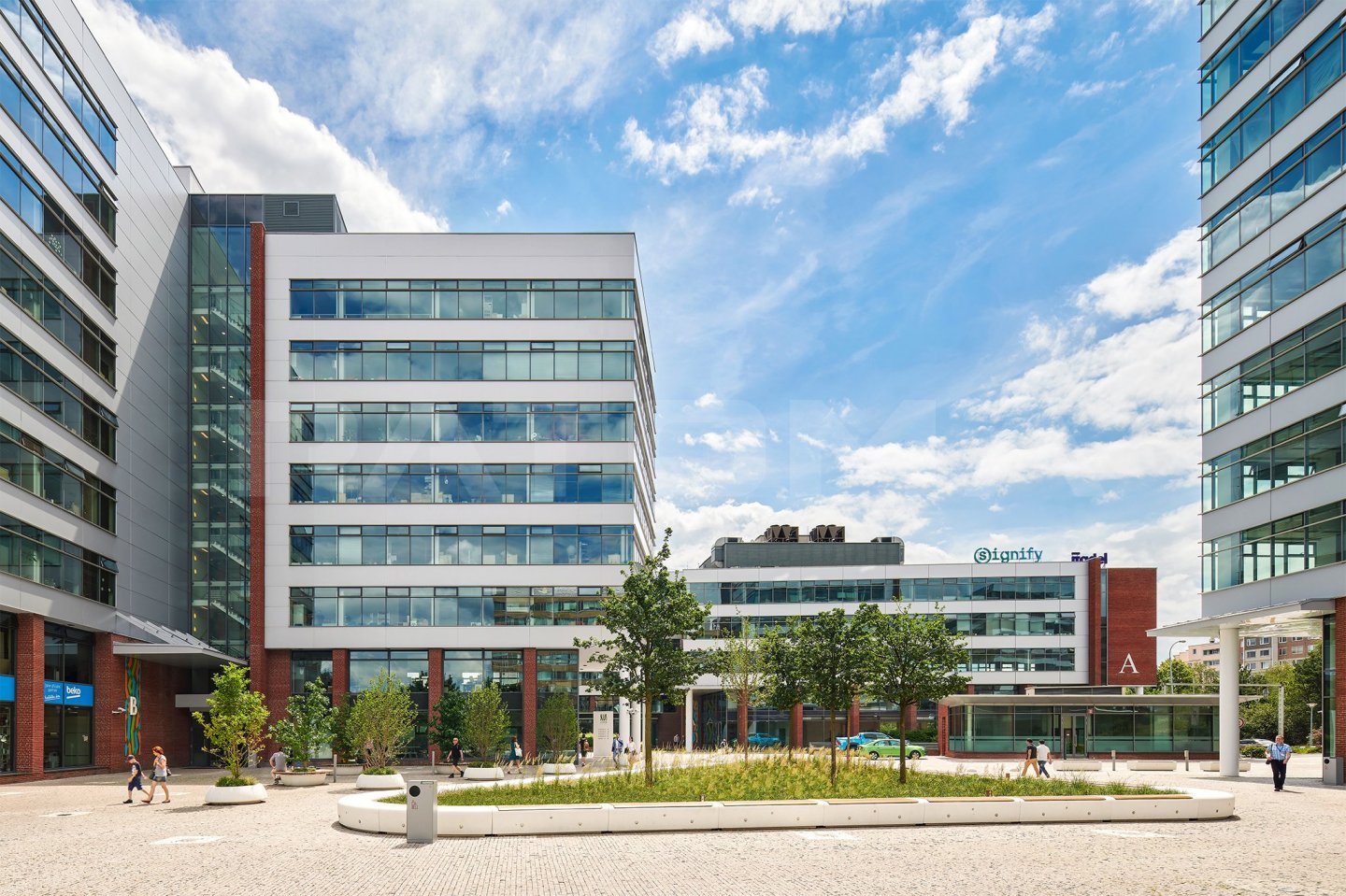 Objekt nabízí velkou škálu služeb pro své nájemce - konferenční centrum, automyčku, restauraci, rychlodobíjecí stanice pro elektromobily, stojany pro kola, sprchy, skříňky na odložení osobních věcí či tzv. Rohlik Point a mnoho dalších. Pro nájemníky je zde možnost parkovacího stání (80 €/měsíc).