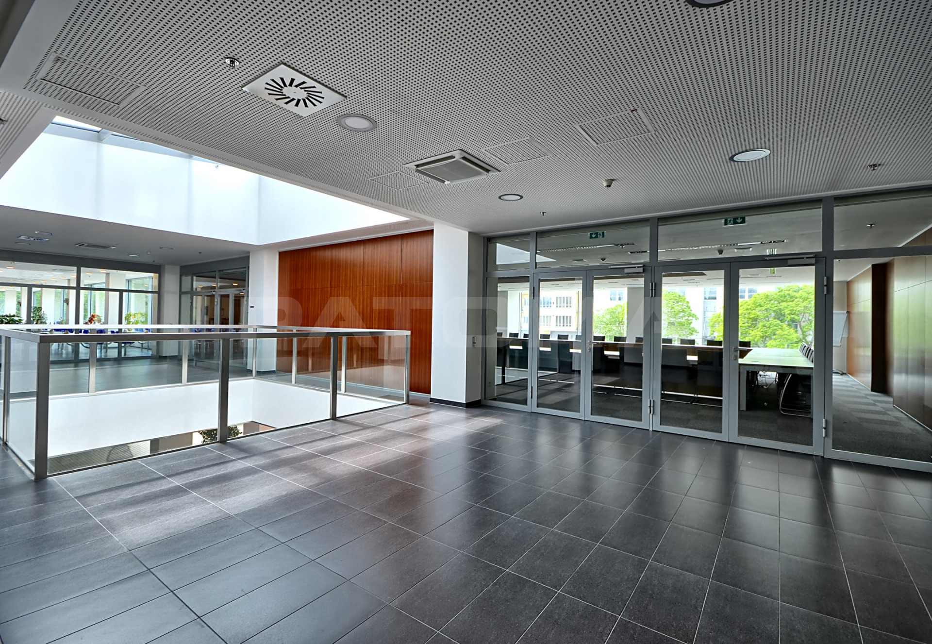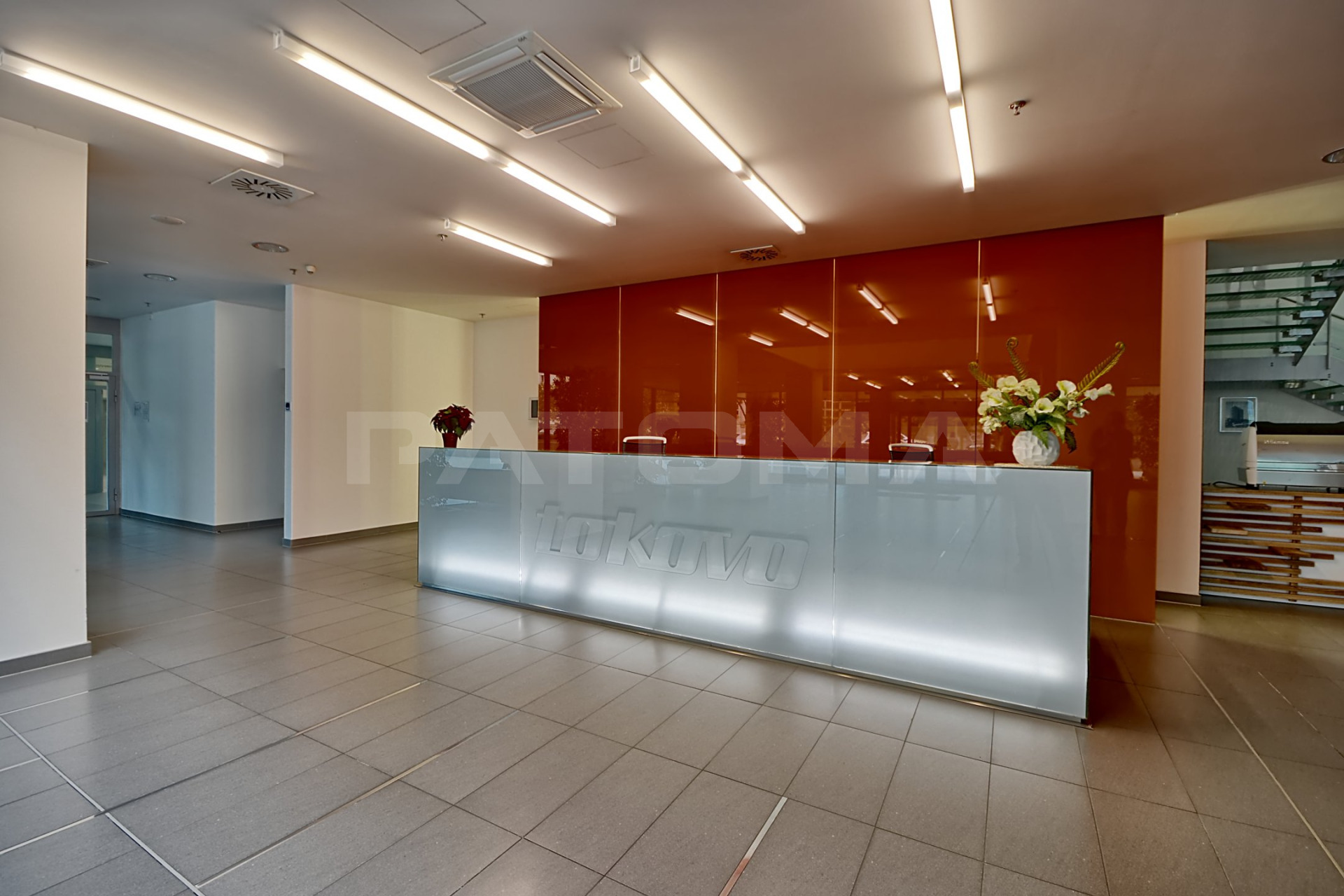 Při vstupu do budovy se nachází centrální společná recepce, přístup na magnetické karty, bezpečnostní služba 24h, kamerový systém, osobní výtahy, bezbariérový přístup, restaurace.