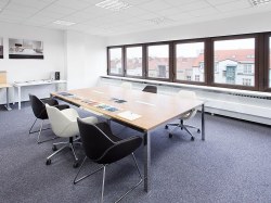 Dispozičně se jedná o samostatné kanceláře. Toalety a kuchyňka jsou sdílené a hned naproti.