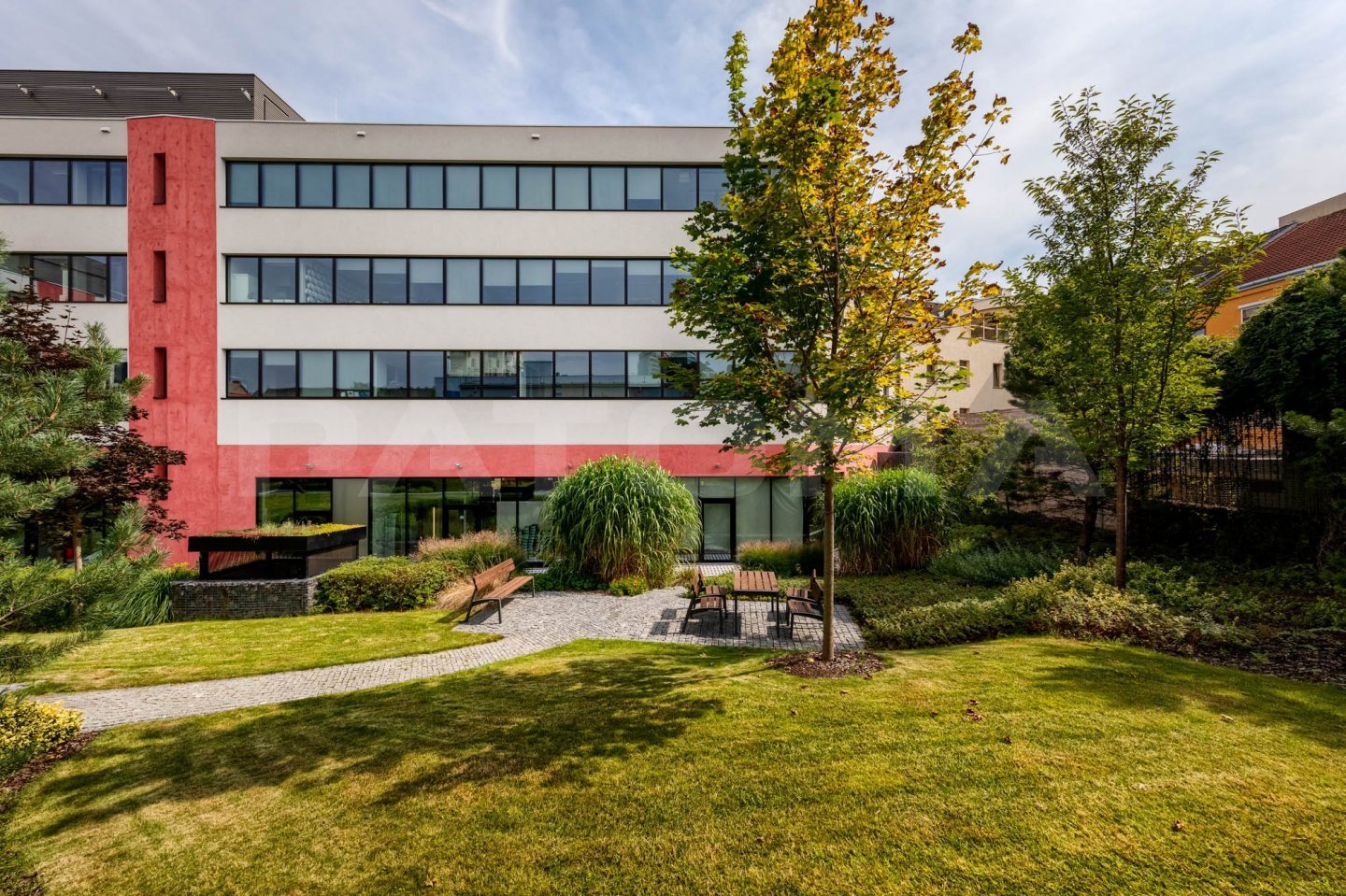 Součástí objektu je také upravený zelený vnitroblok s posezením.