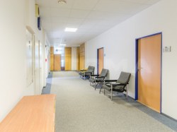 Dispozice prostoru umožňuje velkou variabilitu dle požadavků nájemce. Kuchyňka, a toalety jsou sdílené s dalšími nájemníky. V celém prostoru jsou rozvedeny elektrické a datové sítě zdvojenou podlahou. Všechny prostory jsou klimatizovány a opatřeny otevíratelnými okny. V areálu je k dispozici stravovací zařízení.