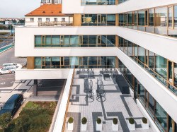 V budově je centrální recepce a 24h ostraha objektu. K dispozici jsou garážová stání (130EUR/měs.). K dispozici je parkování pro kola a sprcha.