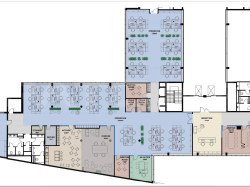Prostor disponuje vlastním sociálním zařízením, kuchyňkou, otevíratelnými okny, zdvojenou podlahou apod. Dispozici je možné upravit na přání klienta (viz návrh budoucího možného layoutu).