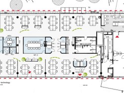 Prostory s hotovým fitoutem, který lze měnit dle požadavků budoucího nájemce. Součástí jsou kuchyňka a toalety. Komerční prostor má 4 samostatné vstupy přímo z ulice.