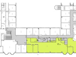 Dispozičně se jedná převážně o openspace, vlastní soc. zázemí, kuchyňka, sprcha, viz plánek.