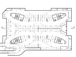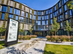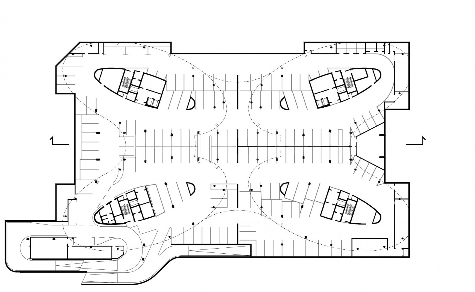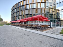 Budova nabízí parkovací místa, restauraci, obchod s čerstvými potravinami, kavárnu atd.