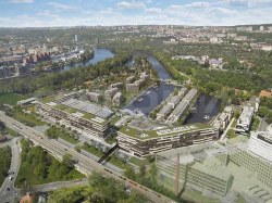 Komplex nabízí mnoho zeleně a vodní plochy k užívání.