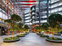 - 4 výtahy v atriu a 3 nákladní výtahy uvnitř budovy