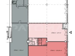 Prostory lze dělit na menší jednotky: 206 m²+ 273 m² nebo 206 m² + 146 m² + 127 m²
