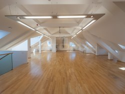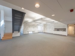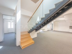Tato krásná atypická jednotka je umístěna ve dvou patrech spojených vnitřním schodištěm. Spodní patro je rozděleno na několik kanceláří různé velikosti. Dále centrální společný prostor s kuchyňkou, který je možné nechat otevřený nebo ho předělat na zasedací místnosti. K dispozici též sociální zázemí a 2x phonebooth.