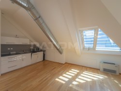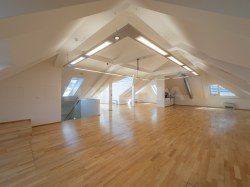 Horní patro je jeden otevřený podkrovní prostor s parketami, s vlastní menší kuchyňkou.