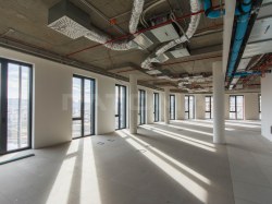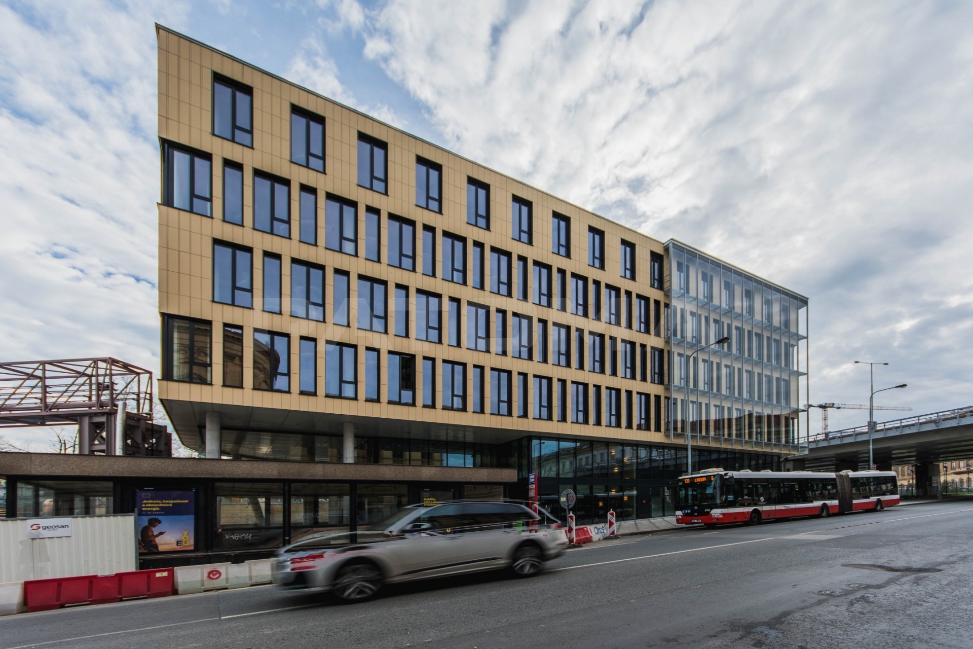Každé patro je možné rozdělit na dvě nájemní jednotky. Díky protihlukové bariéře vybudované ze strany viaduktu nebudete při práci rušeni žádnými zvuky z ulice.