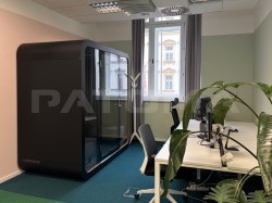 Kancelářské prostory zahrnují vše, co potřebujete pro klidnou a efektivní práci: recepci, zasedací místnosti, open space, privátní kanceláře, dvě kuchyňky, skladové prostory a nechybí ani komfortní „telefonní budky“ pro jednu či více osob. To vše vybavené kancelářským nábytkem a připravené k nastěhování.