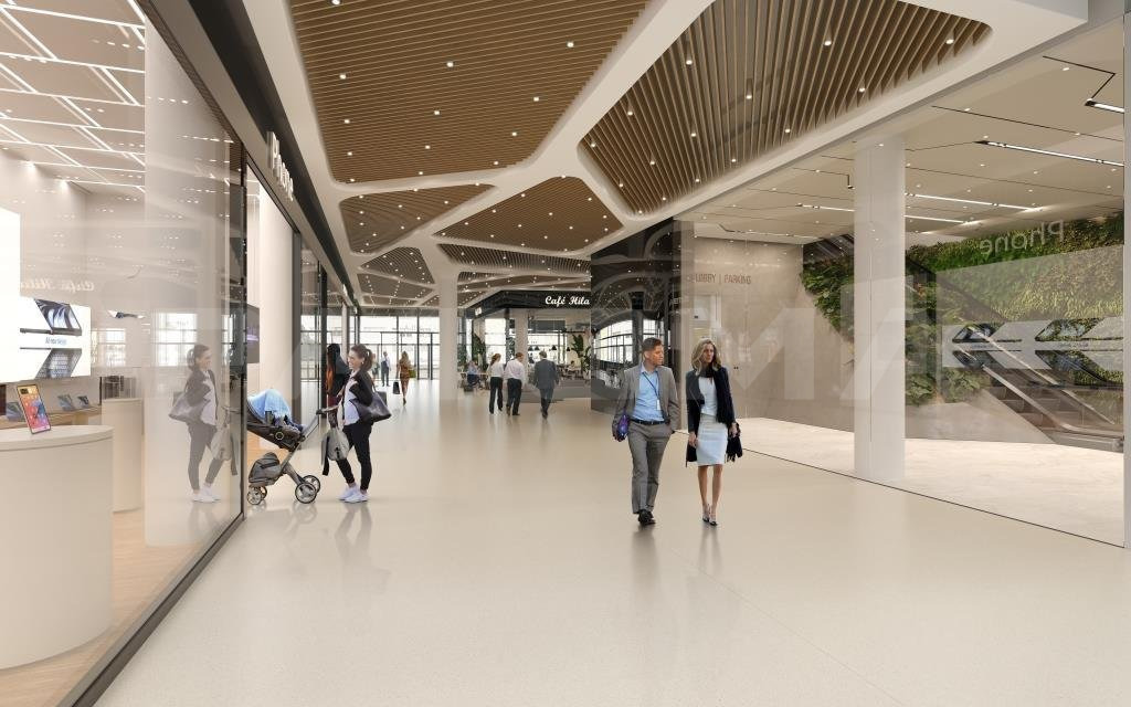 Obchodní jednotky budou přístupné jak z okolních ulic, tak z příjemné obchodní pasáže. Čtyři podzemní podlaží nabídnou přibližně 420 parkovacích míst určených výhradně nájemcům budovy, včetně příprav nabíjecích stanic pro elektromobily.