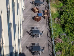Komplex disponuje garážemi (3.000 za místo měsíčně), je zde možné navštívit restauraci a relaxační prostory v horních patrech budovy.