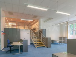 Jedná se o open space s vestavěným patrem, který dodává prostoru zajímavý vzhled. V patře jsou 2 zasedací místnosti, ale lze jej využít jako relax zónu. Vysoký strop dodává kanceláři industriální vzhled. Prostor je vybaven elektronickým vstupním systémem, klimatizací, otevíratelnými okny, strukturovanou datovou sítí. Toalety a kuchyňka jsou sdílené.