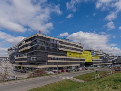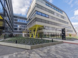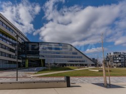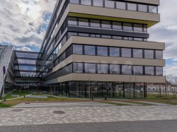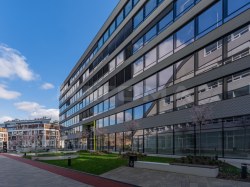 Kancelářské prostory jsou součástí moderní budovy v širším centru Prahy u Vltavy.