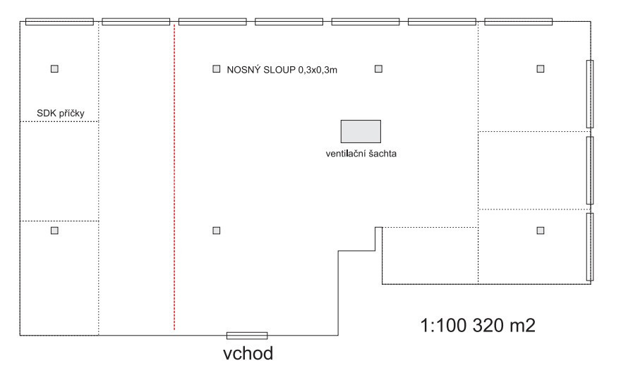 Prostor se nachází v 2 NP s přímým napojením na nakládací rampu. k dispozici je nákladní výtah s nosností 2000kg. Nosnost podlah je 700 kg/m². Podlahy tvoří keramická dlažba. Svislé příčky jsou sádrokartonové. Výška stropu 3 m. Sociální zařízení jsou sdílená.