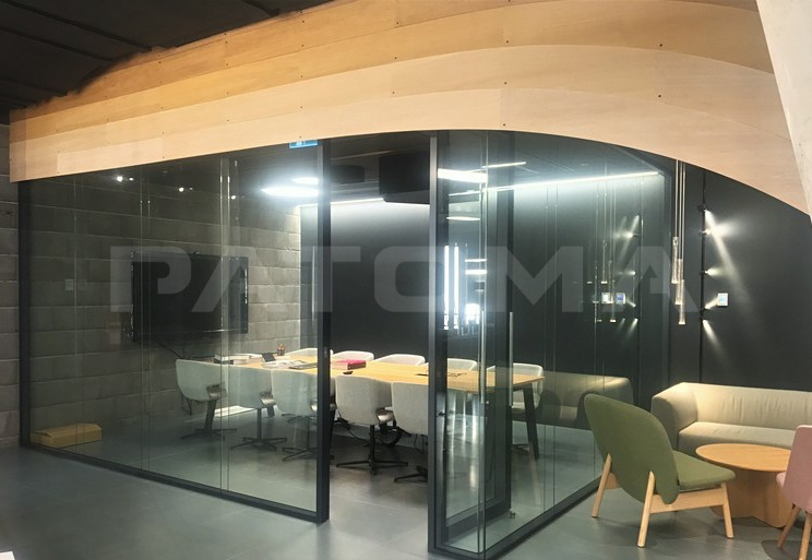 Industriální architekturu doplňuje například druhý plášť fasády z tahokovu, přiznaný beton, či odhalená instalační vedení na stropech.