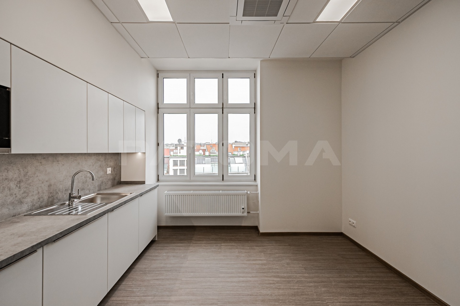 Objekt nabízí flexibilní kanceláře, které jsou po kompletní rekonstrukci s možností rozdělení podlaží jak na jednotlivé kanceláře tak open space.
