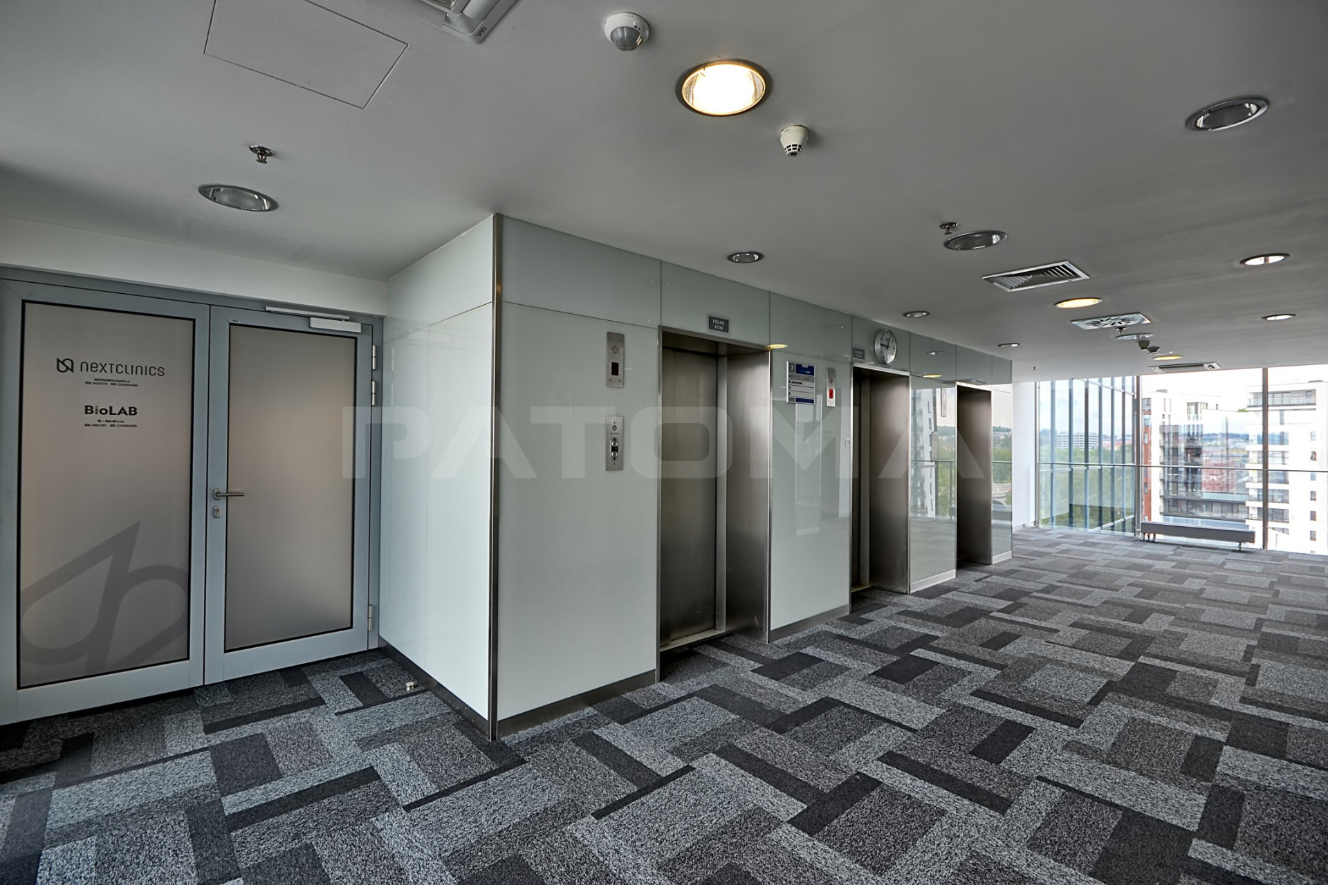Při vstupu do budovy se nachází centrální společná recepce, přístup na magnetické karty, bezpečnostní služba 24h, kamerový systém, osobní výtahy, bezbariérový přístup, restaurace.