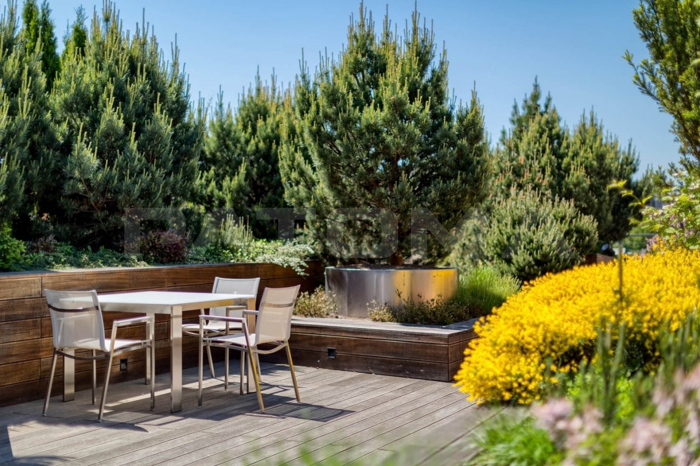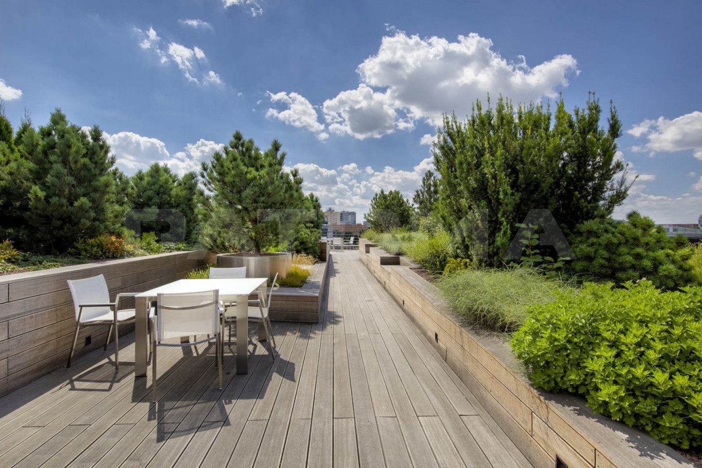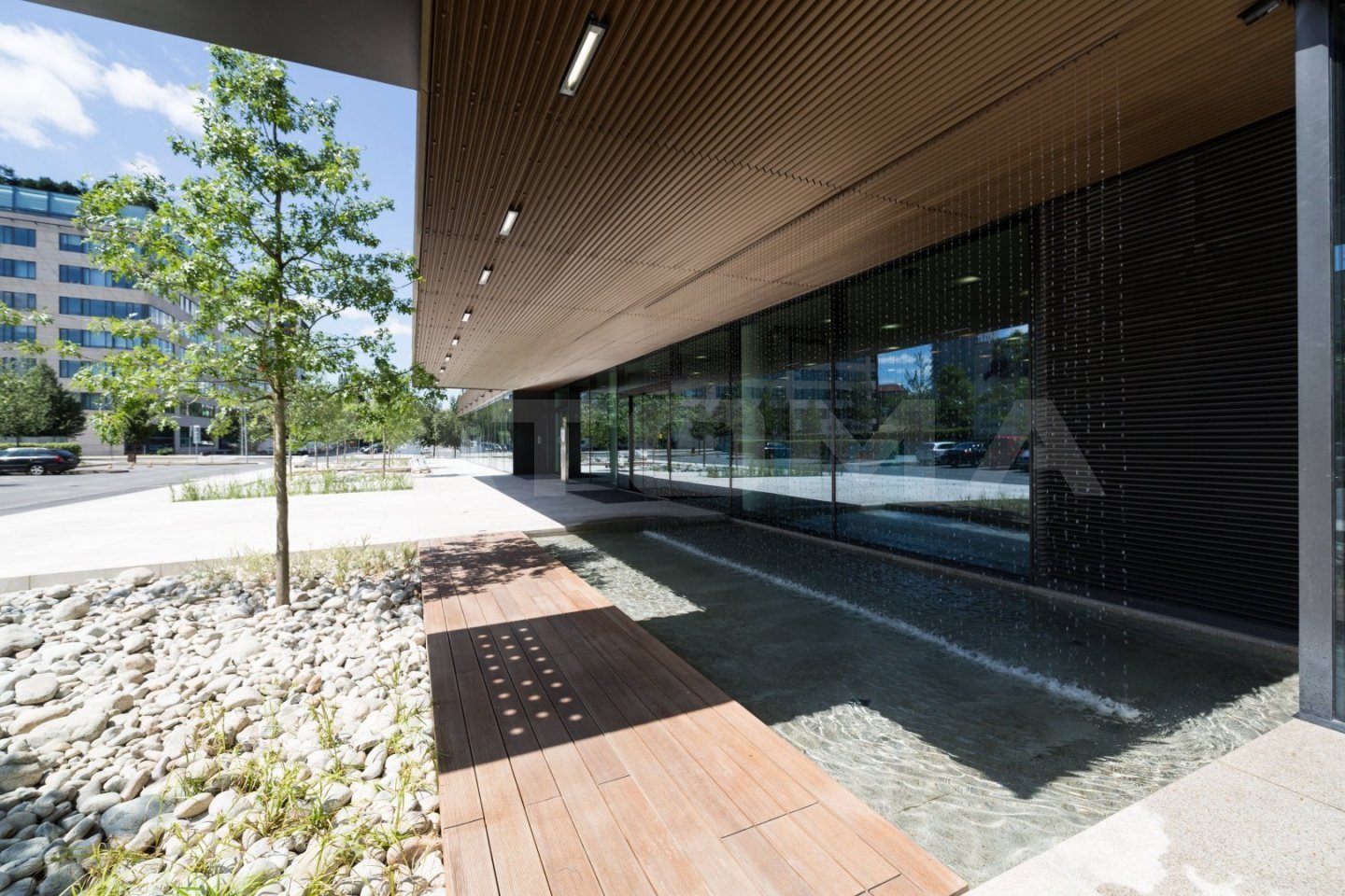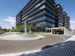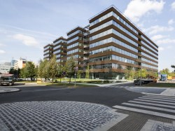 K dispozici jsou nájemcům střešní terasy s bohatou zelení a relaxačními zónami, kantýna a restaurace.
