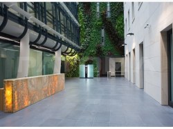 Při vstupu do budovy se nachází reprezentativní centrální recepce 24/7, obchodní prostory, restaurace.