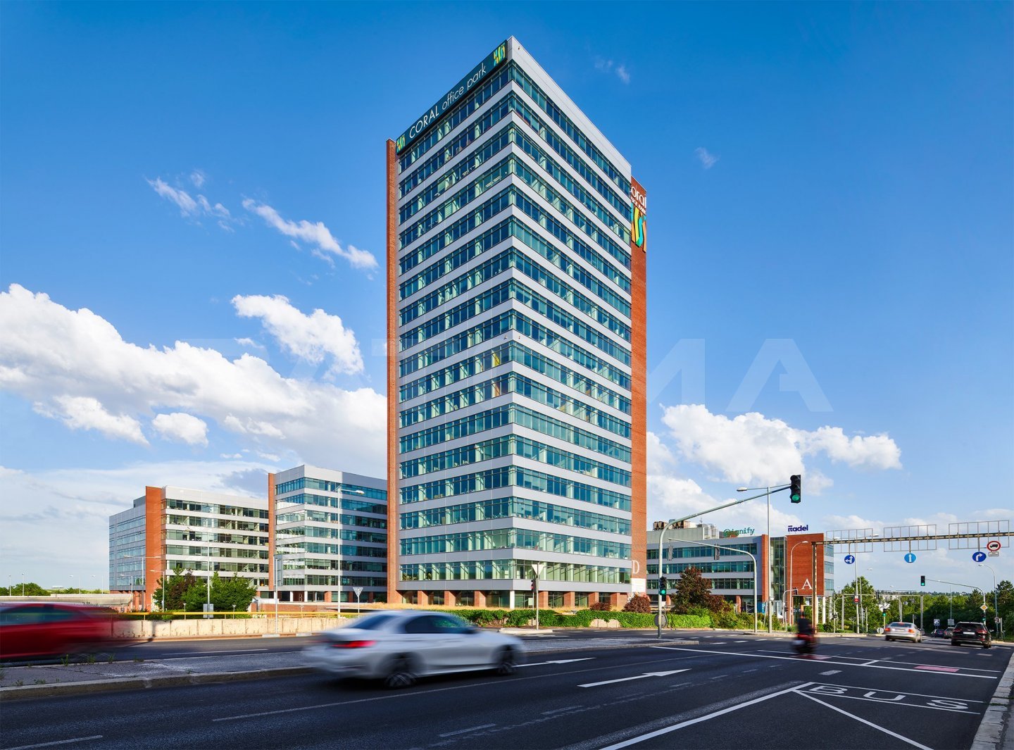 Objekt nabízí velkou škálu služeb pro své nájemce - konferenční centrum, automyčku, restauraci, rychlodobíjecí stanice pro elektromobily, stojany pro kola, sprchy, skříňky na odložení osobních věcí či tzv. Rohlik Point a mnoho dalších. Pro nájemníky je zde možnost parkovacího stání (80 €/měsíc).