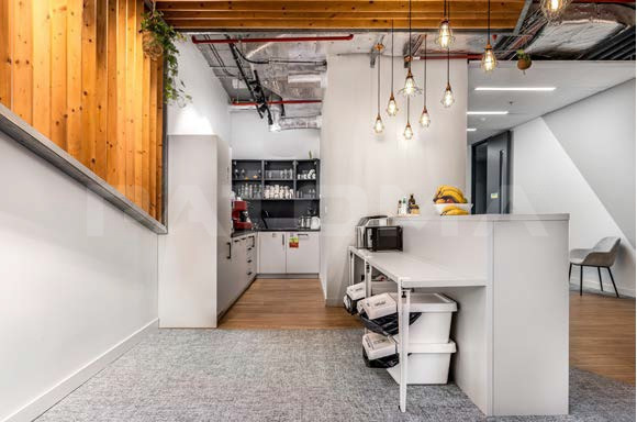 Podlaží může být rozděleno ne menší celky s nezávislými vstupy pro potenciální nájemce. Kanceláře disponují vlastními toaletami a kuchyňkou.