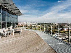 Budova nabízí recepci 24/7, 3 vysokorychlostní výtahy, 2 schodiště propojující administrativní část budovy s parkingem a průkaz energetické náročnosti B.