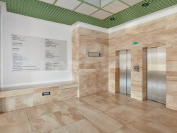 Budova disponuje centrální recepcí a výtahem, je zde také možnost pronájmu parkovacích stání hned u domu.