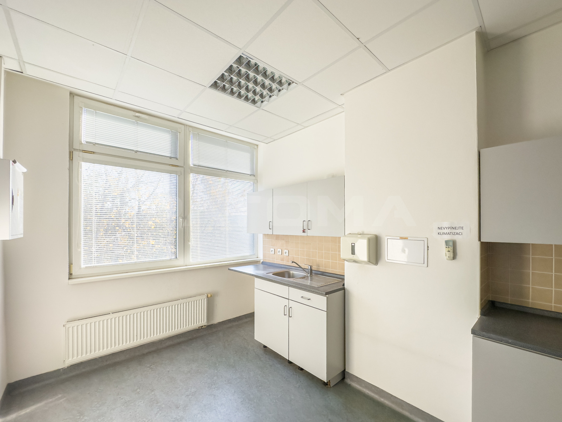 Kanceláře jsou dispozičně rozdělené na jednotlivé místnosti, kuchyňka je vlastní, sociální zázemí je společné na patře. V budově není výtah. V areálu je k dispozici parkování za poplatek.