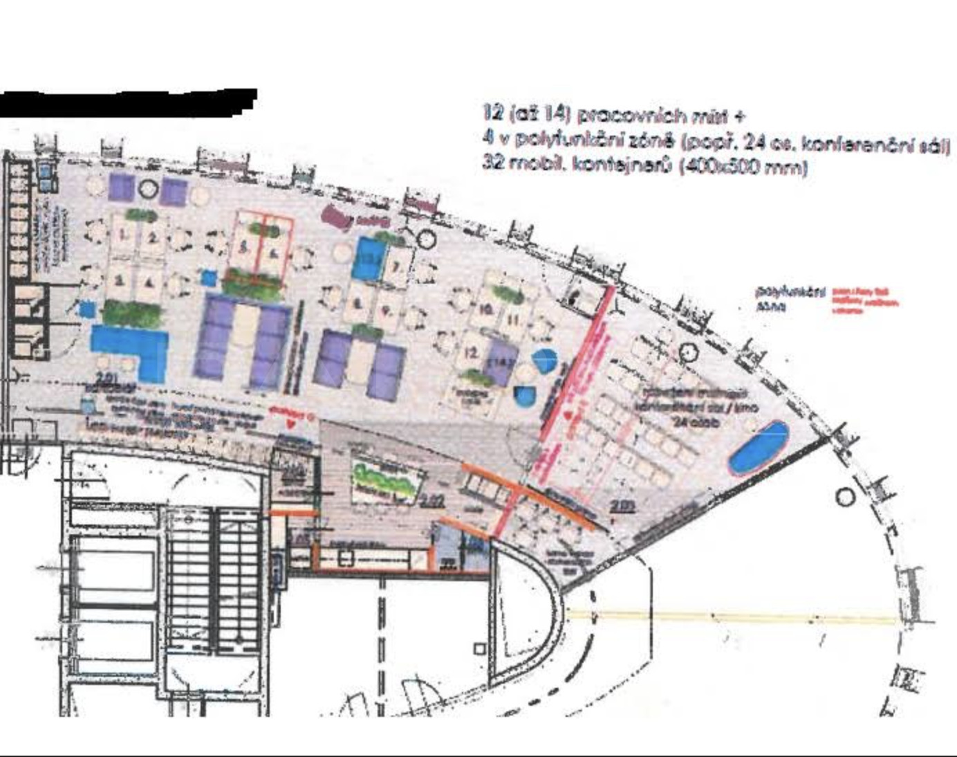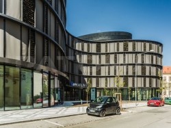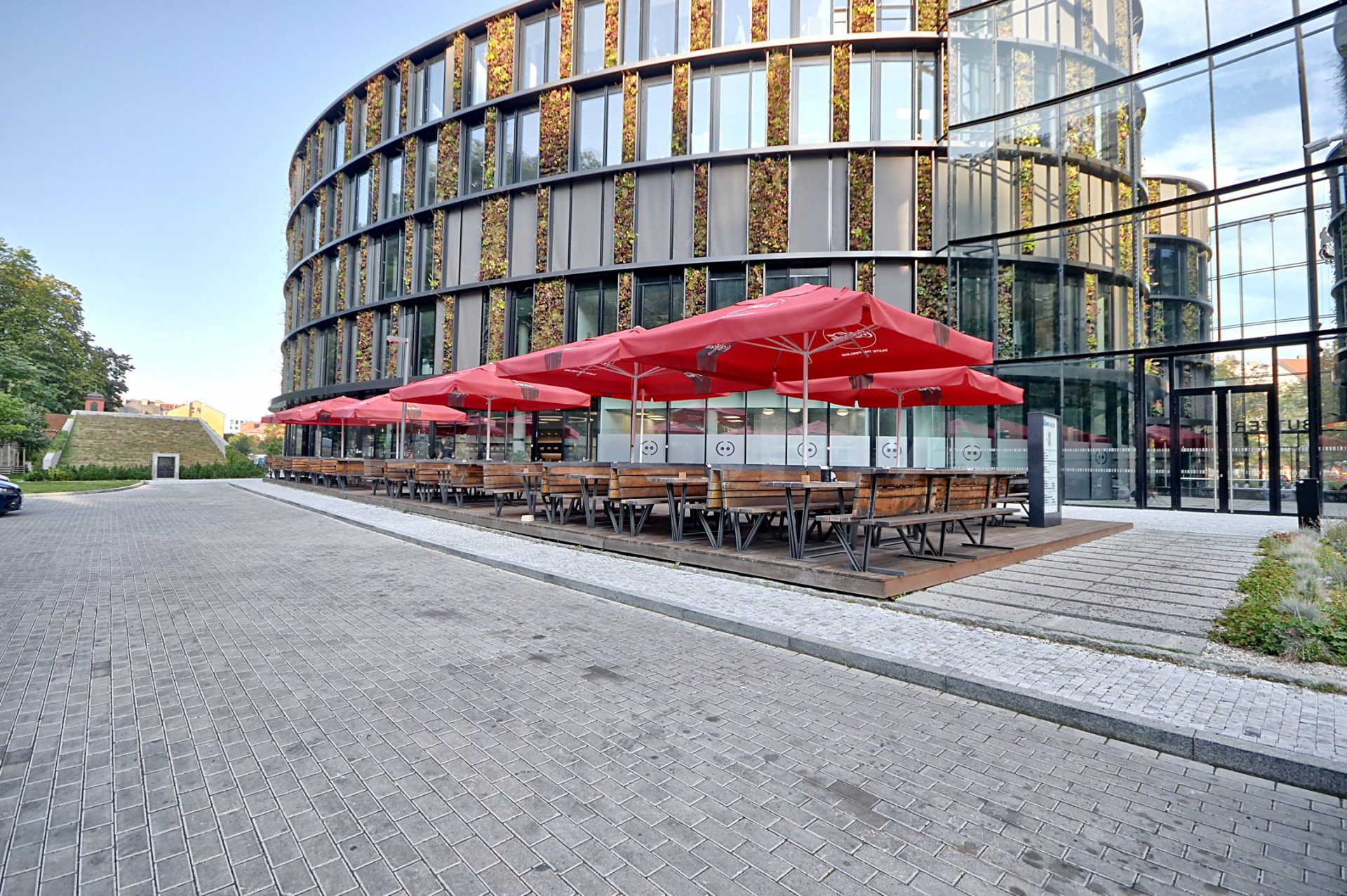 Budova nabízí parkovací místa, restauraci, obchod s čerstvými potravinami, kavárnu atd.
