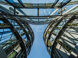 Fasáda tvořena několikavrstvým závěsným stěnovým systémem. Dále je na fasádě kromě vnějších elektricky ovládaných textilních žaluzií také více než 40 000 živých rostlin s automatickým zavlažováním. Vertikální zelené zahrady také vylepšují akustické podmínky v nejbližším okolí. Přirozené větrání zajišťují kovové klapky ve fasádním systému.