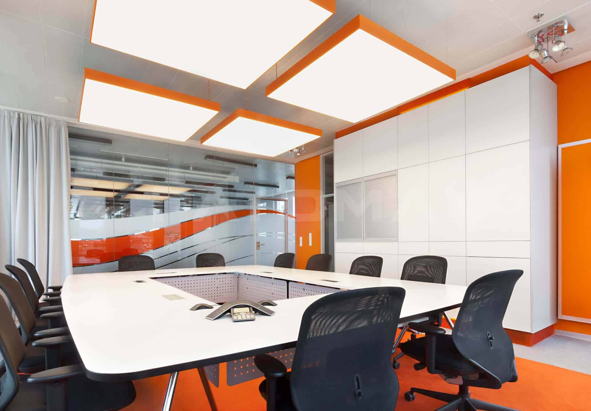 - Plně prosklená fasáda, zavěšené stropy s výškou 3 m