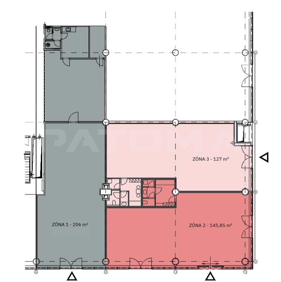 Prostory lze dělit na menší jednotky: 206 m²+ 273 m² nebo 206 m² + 146 m² + 127 m²