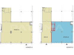 Prostory lze dělit na menší jednotky: 206 m²+ 273 m² nebo 206 m² + 146 m² + 127 m²