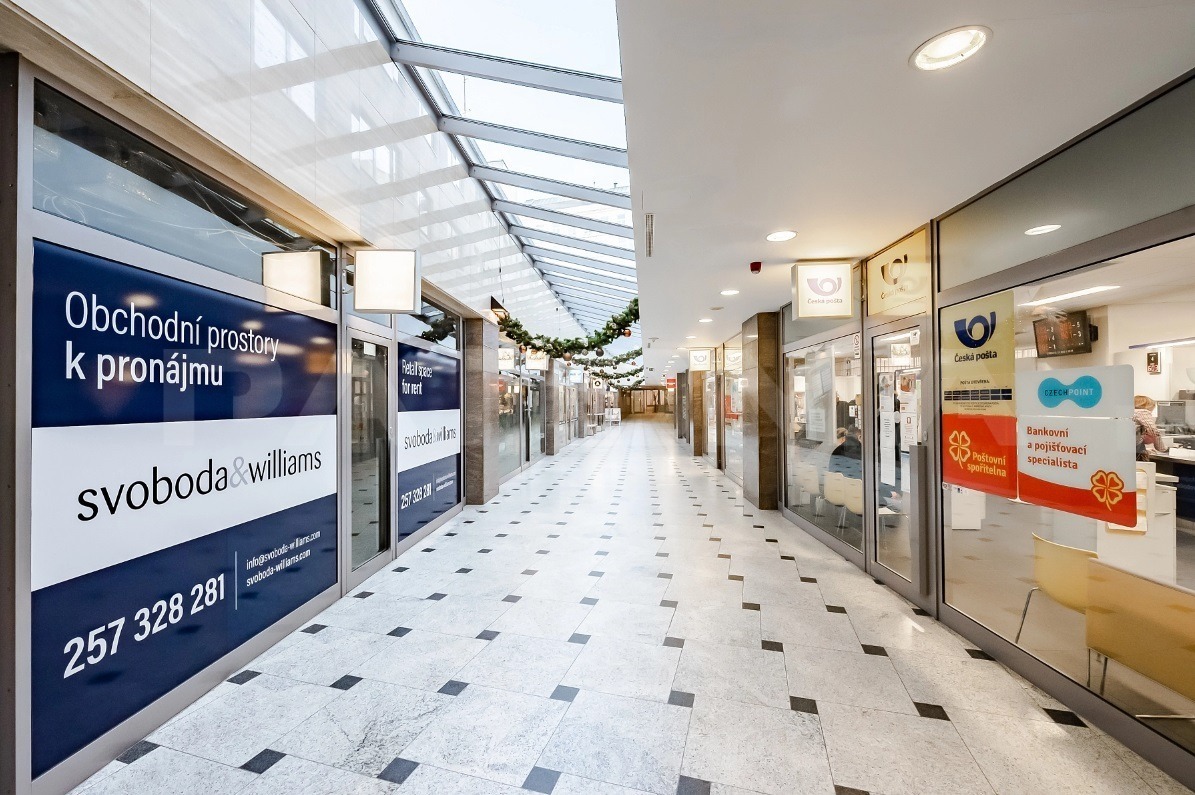 Obchodní prostory se nachází v přízemí a suterénu v obchodní pasáži Burzovního Paláce.