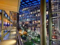 Tento architektonicky zajímavý objekt, jenž je součástí komplexu River City Prague, je mimo jiné charakteristický také snahou o co nejmenší ekologickou stopu a disponuje certifikací zelené budovy LEED Platinum. I když je atrium zastřešené, díky stromům a keřům máte pocit, že jste pořád venku.