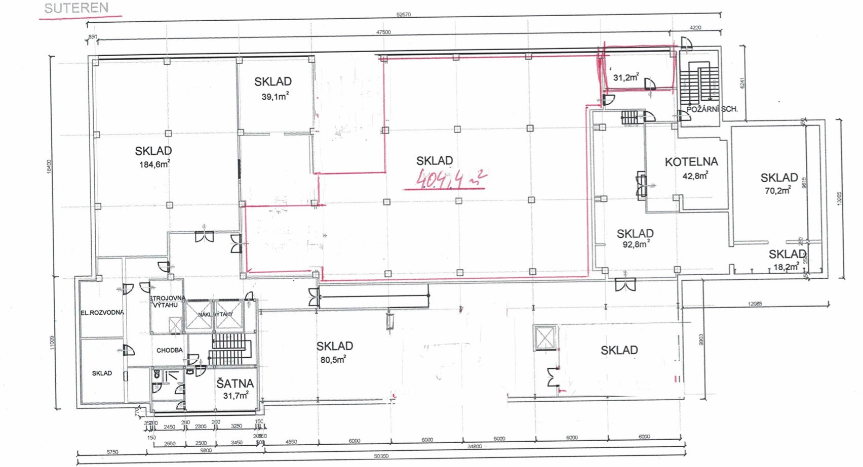 Nosnosti podlah : přízemí=750kg/m2 ; 1.patro=750kg/m2 ; 2.patro=700kg/m2 ; 5.patro=500kg/m2. Výška skladu 3m, pod nosníky 2,7m.